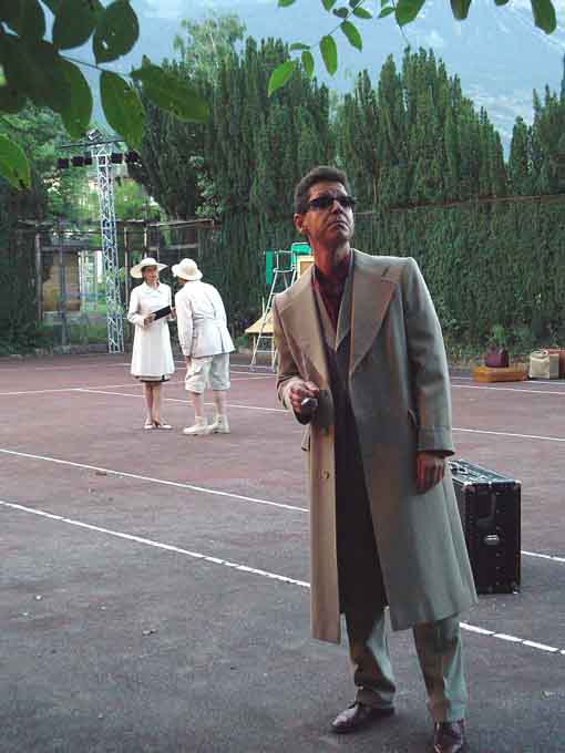 LA DOUBLE INCONSTANCE de Marivaux, mise en scène Daniel Wolf, spectacle en plein air au Château Mercier, Sierre. Pour ses 20 ans, la compagnie Opale joue Marivaux. « Histoire d’amour et de conspiration que le metteur en scène Daniel Wolf a parsemée de clins d’oeil et d’autres petites fantaisies. Se servant de cet espace de jeu original, un court de tennis, il s’amuse de toutes les possibilités de ce non-cloisonnement et offre un spectacle ludique, aux définitions précises et ingénieuses. » Hebdo, juillet 2005